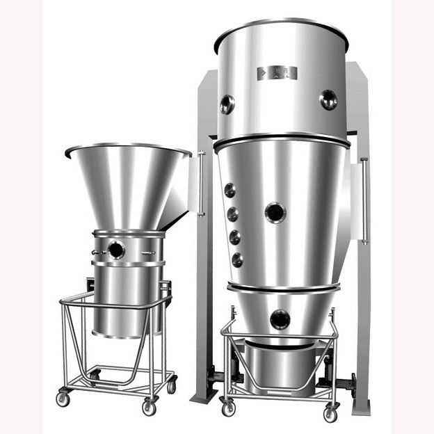 流化床喷雾造粒干燥机该过程是流态化技术、雾化技术和干燥技术三者有机结合。它是将雾化的料液喷洒到已流化的晶种床上,使晶种不断长大和干燥,待长大到规定尺寸时排出器外。该设备体积小、生产能力大,能制造大颗粒。该设备的工业应用已日益增加。