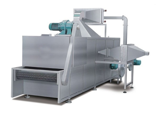 (3)多层带式干燥机:多层带干机常用于干燥速度要求较低、干燥时间较长,在整个干燥过程中工艺操作条件能保持恒定的场合。层间设置隔板以组织干燥介质的定向流动,使物料干燥均匀。多层带干机占地少,结构简单,广泛使用于干燥谷物类物料。但由于操作中要多次装料和卸料,因此不适用于干燥易粘着输送带及不允许碎裂的物料。